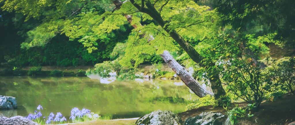 石や竹、木など、自然のままの素材を使ってつくる庭。